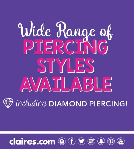 Claire’s is THE place to get pierced. We’ve pierced over 100 million ears worldwide. Our highly trained specialists will ensure that your piercing experience is truly exceptional. Whether you are getting pierced or picking out the perfect accessories for a special celebration, Claire’s will make it special. Claire’s…We make memories.